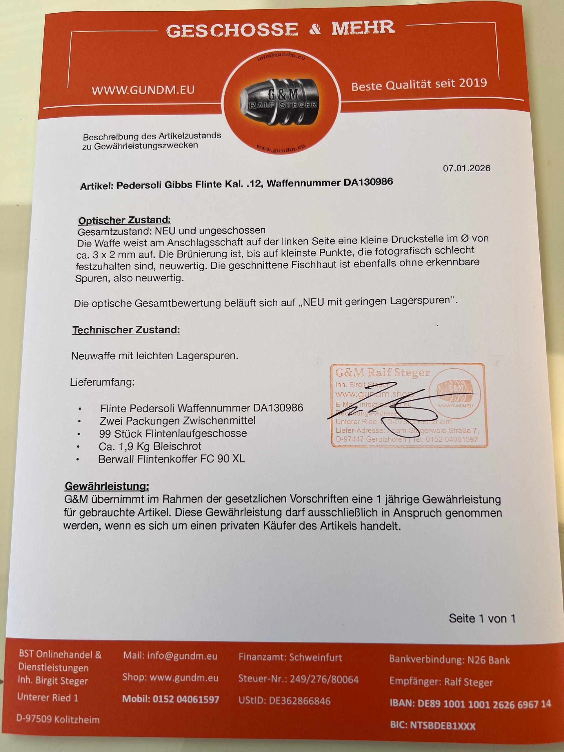 Die Waffe wird zerlegt (Lauf vom Schaft getrennt), in einem neuen Flintenkoffer von Berwall, verschickt. Das Foto dazu folgt.